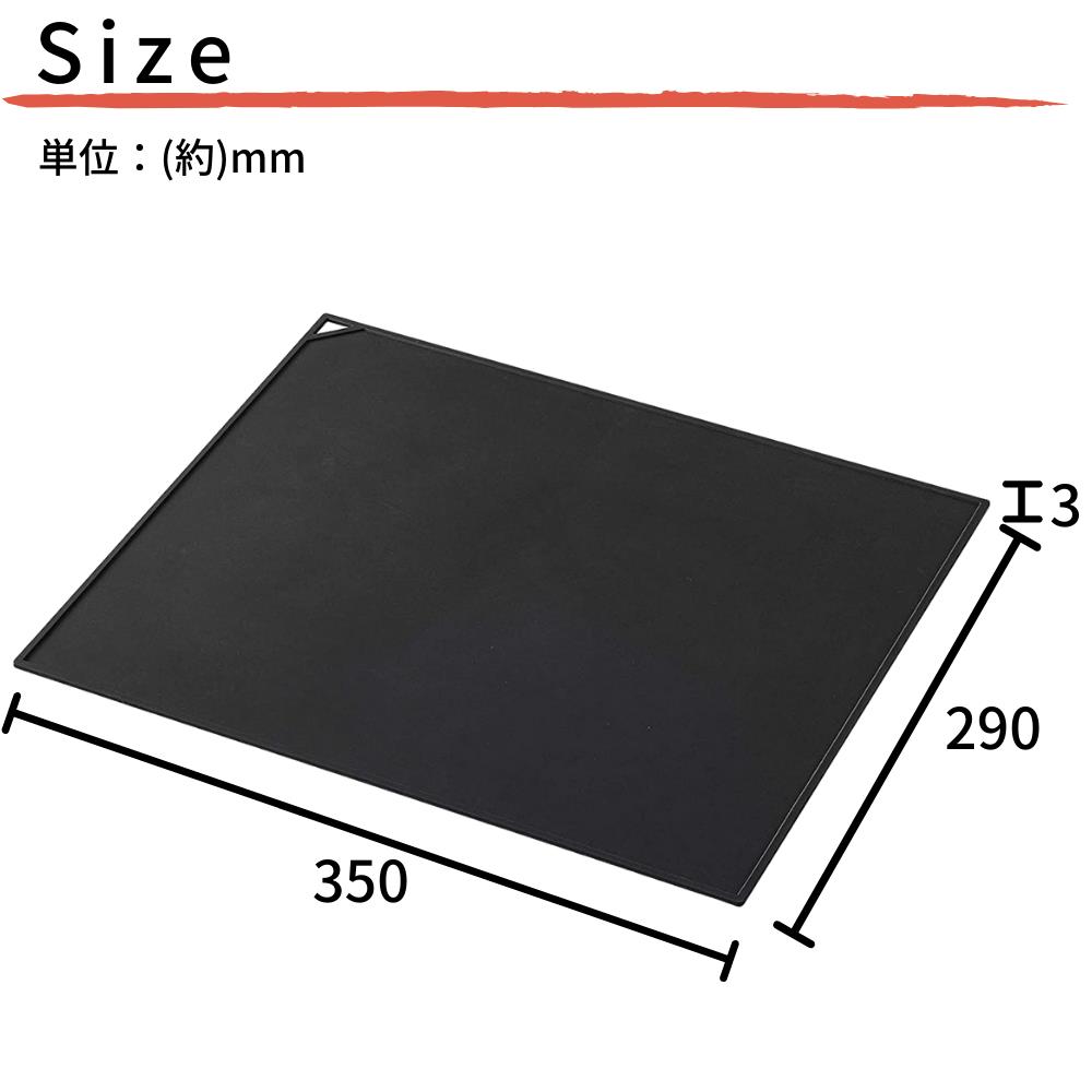 【サイズ】 約W35xD29xH0.3cm 【材質】 本体/シリコーン 【重量】 約180g 【内寸サイズ】 縁:約W34xD28xH0.1cm 【備考】 耐熱温度:250℃、耐冷温度:-40℃、食器洗い乾燥機可 【商品説明補足】 電子レンジ庫内の汚れを敷くだけで簡単に防止できるシリコンマット。