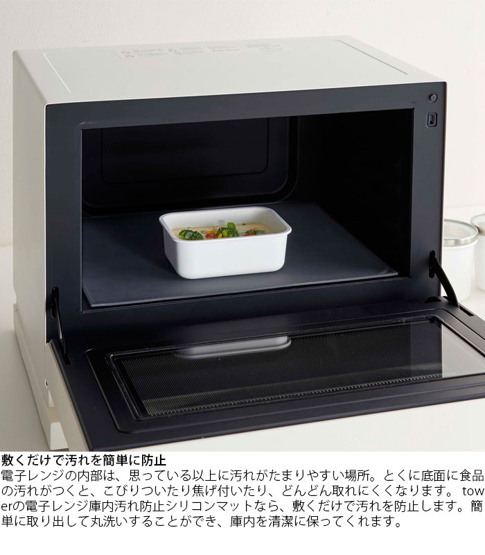山崎実業 tower/タワー 電子レンジ庫内汚れ防止シリコンマット ホワイト/ブラック 洗える 汚れ 滑り止め 電子レンジ 清潔 レンジ 汚れ防止マット シリコン ランチョンマット オーブンレンジ キッチン シンプル 多様性 おしゃれ 白 黒 モノトーン