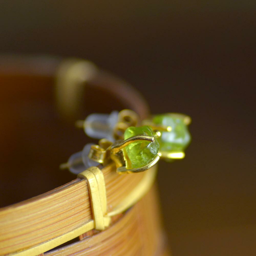 ペリドットの原石をそのままピアスにしたようです。