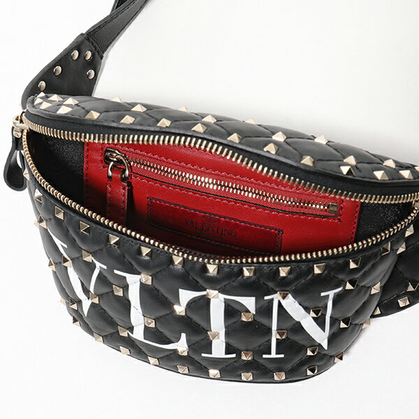 【エントリーでポイント最大16倍!25日限定】VALENTINO ヴァレンティノ QW0B0B46 XQC キルティングレザー マイクロスタッズ装飾 ベルトバッグ ウエストポーチ ボディバッグ NER レディース