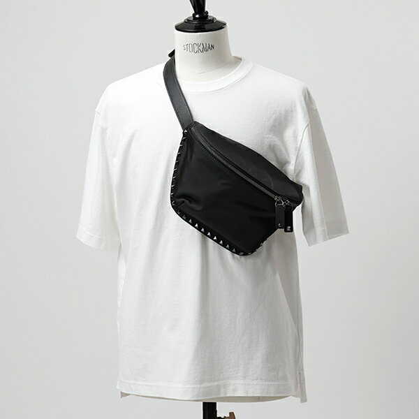 【エントリーでポイント最大16倍!25日限定】VALENTINO ヴァレンティノ RY2B0726 NOV 0NO ロックスタッズ ナイロン ベルトバッグ ボディバッグ ウエストポーチ NERO/NERO メンズ