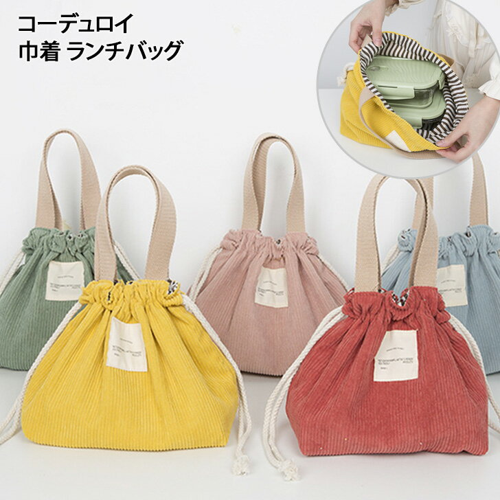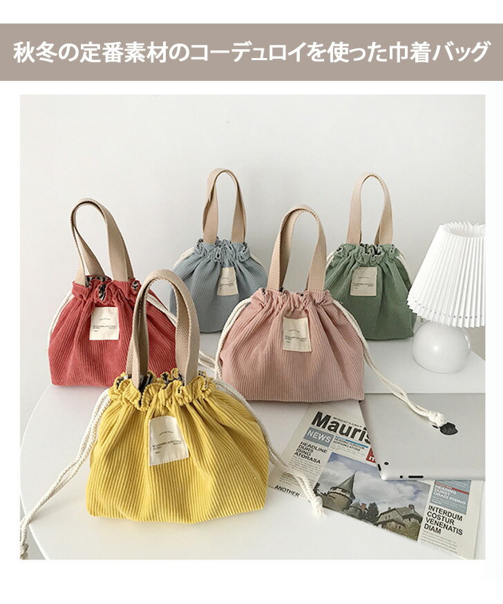 送料無料 値下げ コーデュロイ 巾着 ランチバッグ バッグ レディース かばん おしゃれ かわいい 小さめ ミニ 通勤 通学 ランチ お弁当 お買い物 お出かけ お弁当バッグ マチ付き マチ広 ミニバッグ ミニトート レジャー メール便